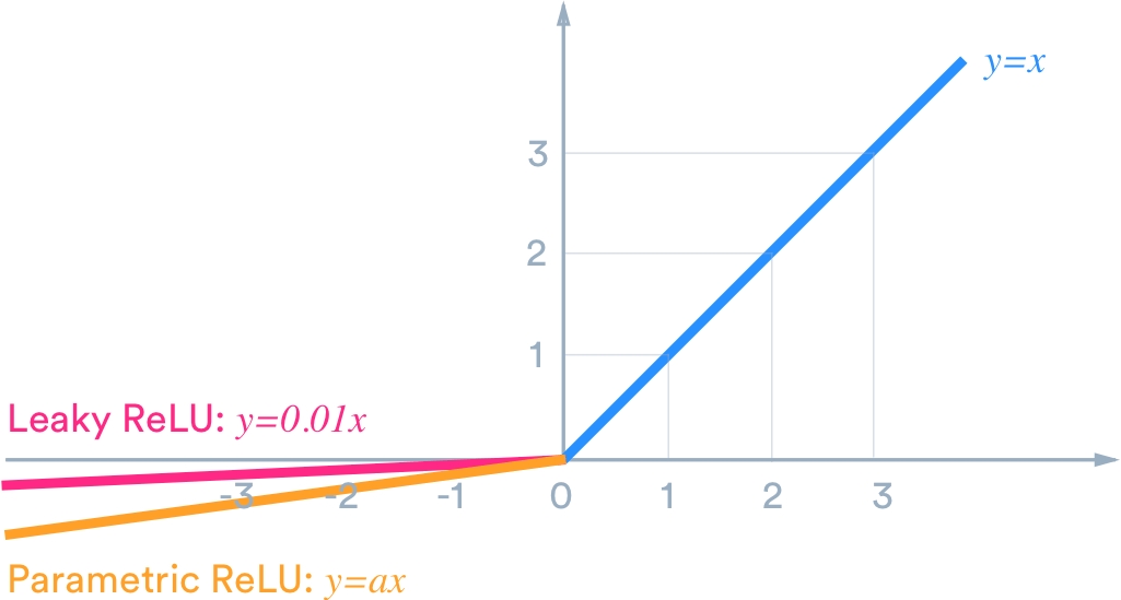 - Fixes "dying relu problem" (no 0 slope, so can have backpropagation now)
